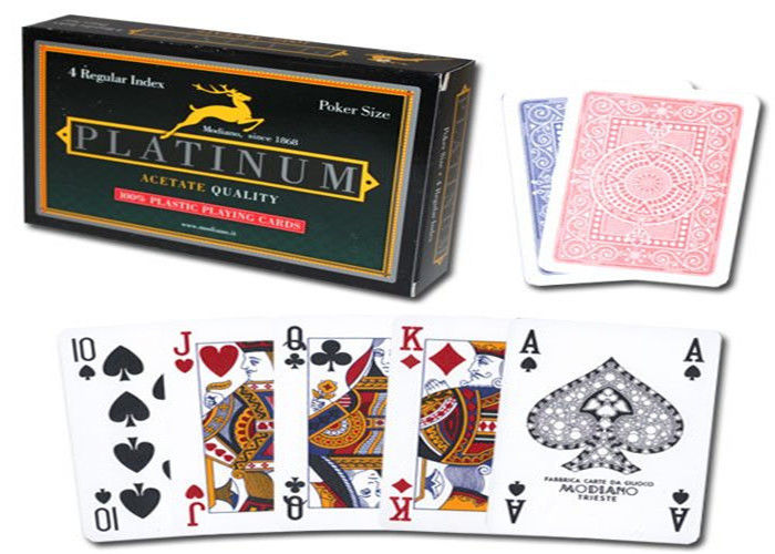 When it comes to Modiano, the cards widely used in Europe country casinos, Modiano Acetate deck speaks for the best! The cards are made of 100% plastic, extremely playable without sacrificing their resilience and sharpness. They can handle the wear and tear of normal games, outlasting paper cards up to 500 times. The shuffle and cut feels more like traditional playing cards. There is no need for you to worry about soiled cards since a quick wipe with a damp washcloth is enough to make them look brand new.